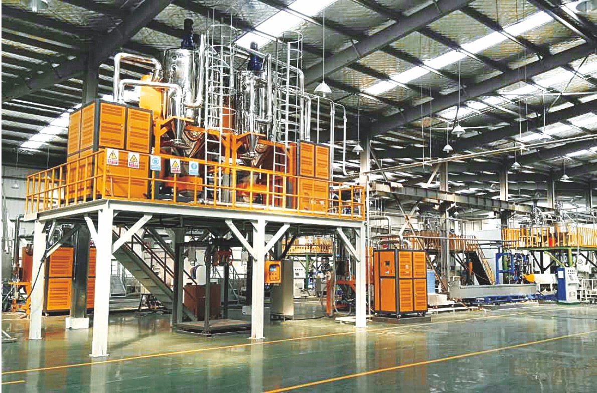 大型戶外料罐的數(shù)量取決于常用的塑料原料及回收料的種類(用量少的原料無須存入大型料罐,待用時可直接抽人干燥料罐使用),其尺寸根據(jù)原料消耗量和儲備量而定,一般可考慮儲備供12周的生產(chǎn)消耗量。大型料罐的制作材料采用不銹鋼或鋁鎂合金,美觀又無須定期上漆防銹。