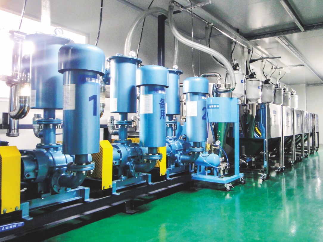 目前,生產干燥空氣最為普遍的方法就是利用干燥氣體發(fā)生器。該自動上料系統以由兩個分子篩組成的吸附性干燥器為核心,空氣中的水分在這里被吸收。在干燥狀態(tài)下,空氣流經分子篩,分子篩吸收氣體中的水分,為干燥提供除濕氣體。在再生狀態(tài)下,分子篩被熱空氣加熱至再生溫度,流經分子篩的氣體收集被除去的水分,并將其帶至周圍環(huán)境中。